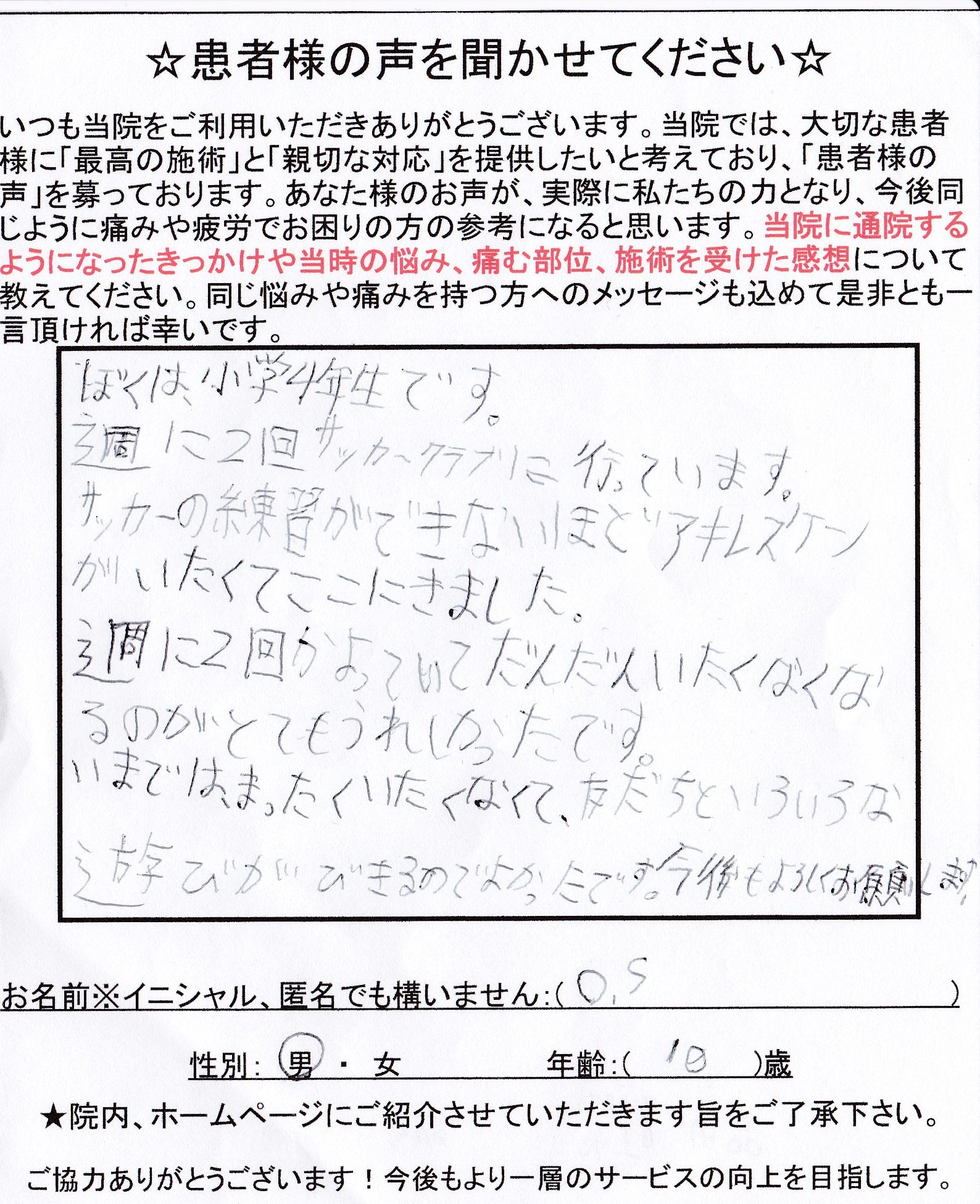 今ではまったく痛くなくて、友達といろいろな遊びができるのでよかったです。