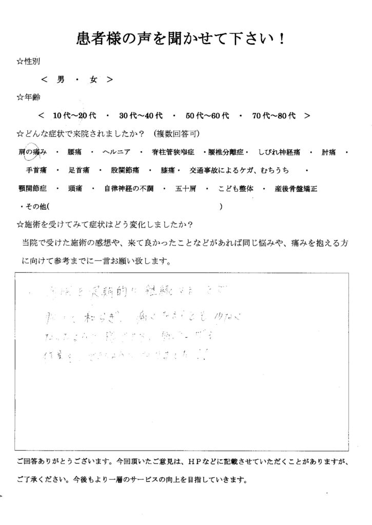 痛みも和らぎ痛くなることも少なくなったように感じます。